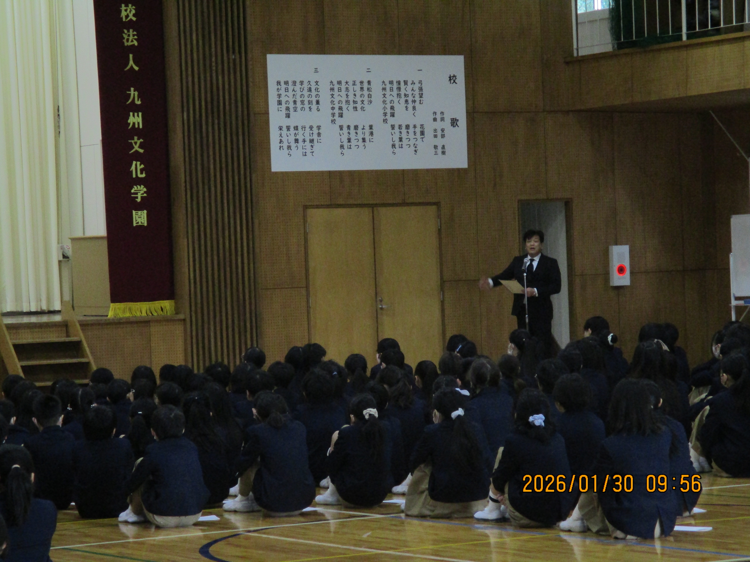 HOME お知らせ 共通トピックス 2025年度 お知らせ 共通トピックス January 30, 2026 1月 学祖追悼式 学祖追悼式 本日、本学園を創設してくださった安部芳雄先生を偲ぶ学祖追悼式を執り行いました。 校長先生からは、この学校での出会いに感謝することや、本校で学ぶことの意味についてお話がありました。理事長からは、本学園の歩みや芳雄先生の想いについてお話をいただきました。 最後は、代表児童生徒が、夢をもって志のために学び、明日へ飛躍することを誓い、心を込めて学園賛歌と校歌を歌いました。 フォトギャラリー Older一覧Newer 施設紹介 九州文化学園 小学校・中学校 2026年度学校案内 資料請求はこちら 見学のご希望、ご相談など お気軽にお問い合わせください。 バスでお越しの場合 JR佐世保駅前から花園町まで約10分花園町バス停から徒歩約1分 電車でお越しの場合 JR佐世保駅からMR中佐世保駅まで約4分MR中佐世保駅から徒歩約16分