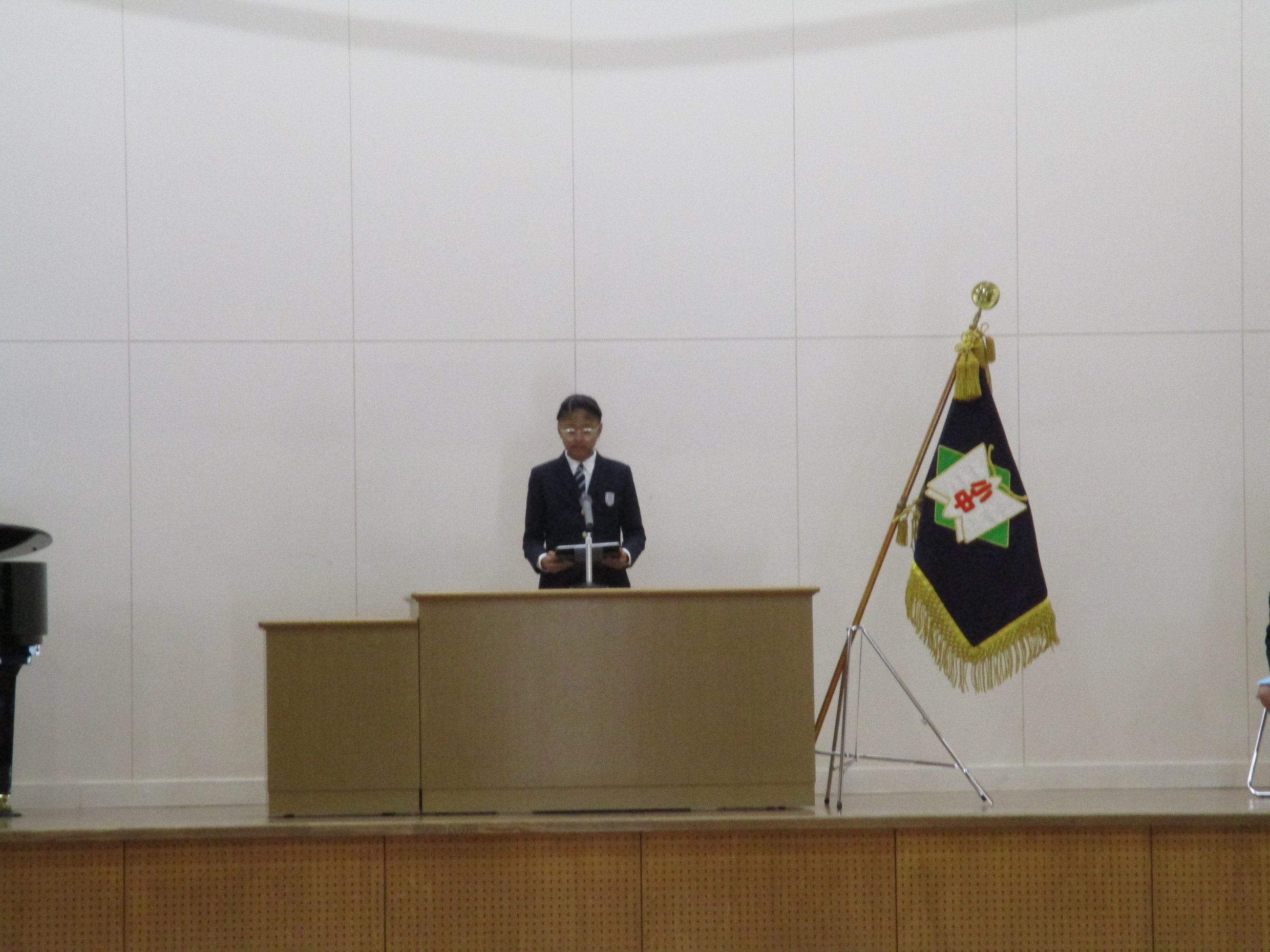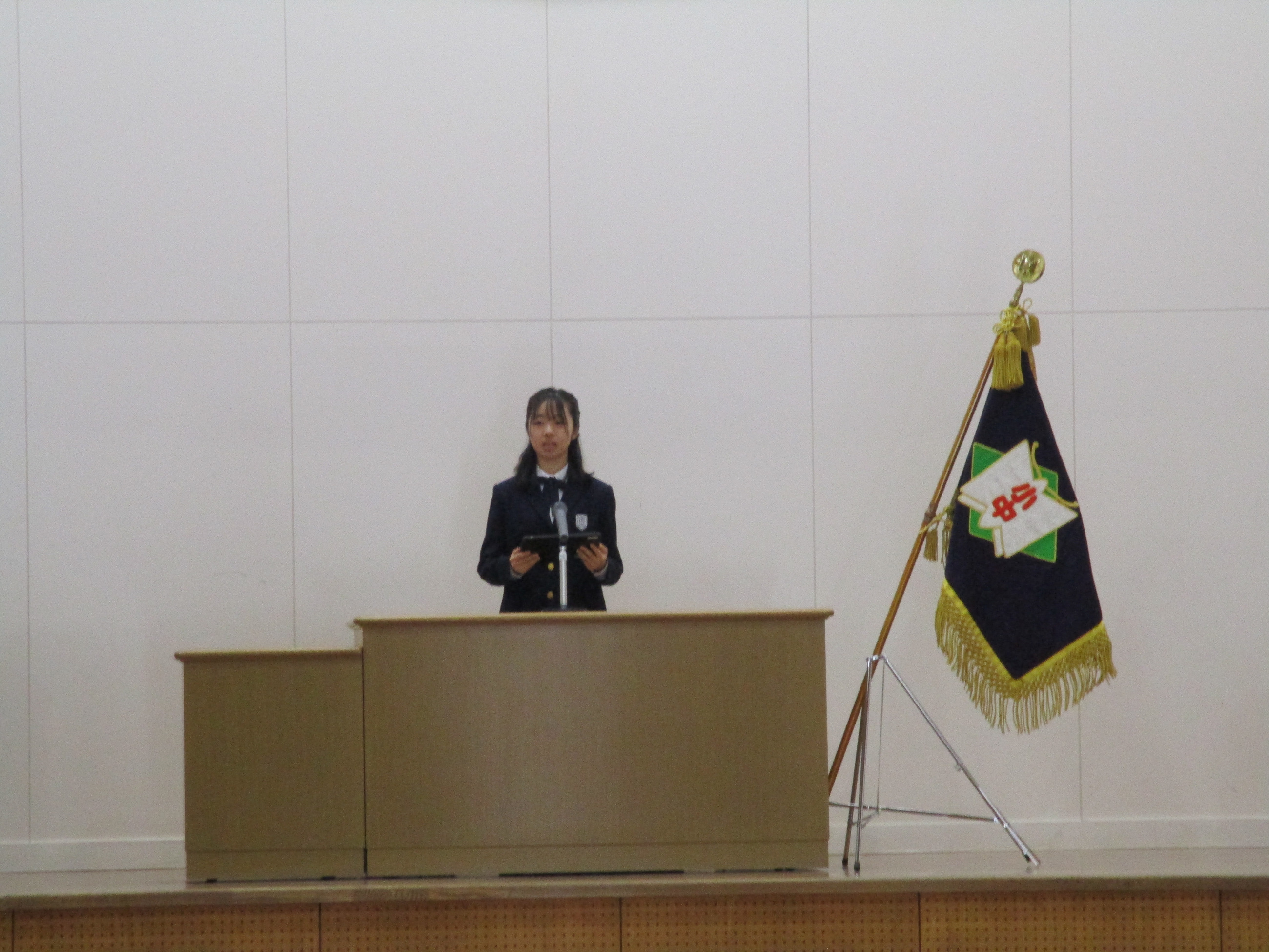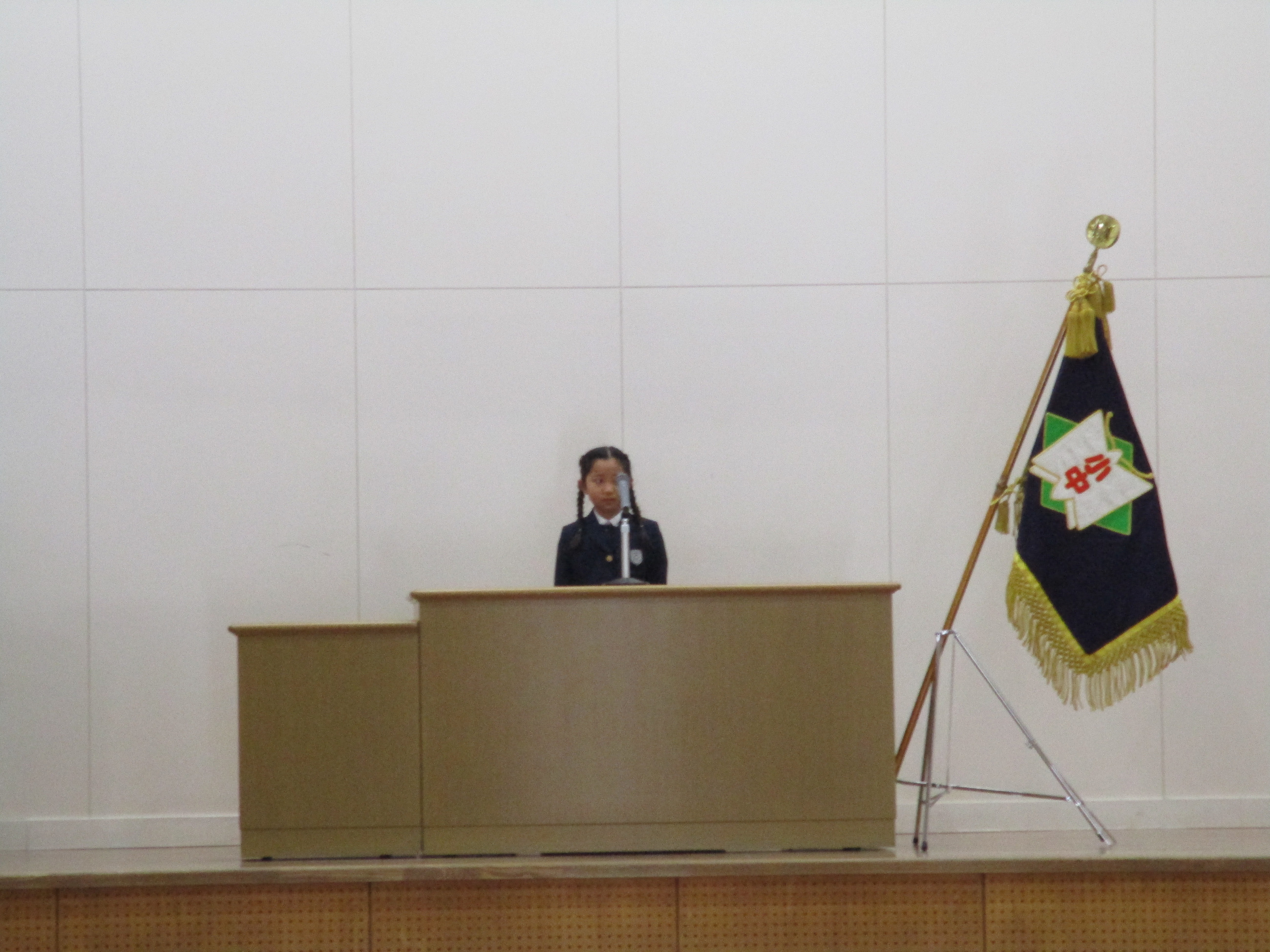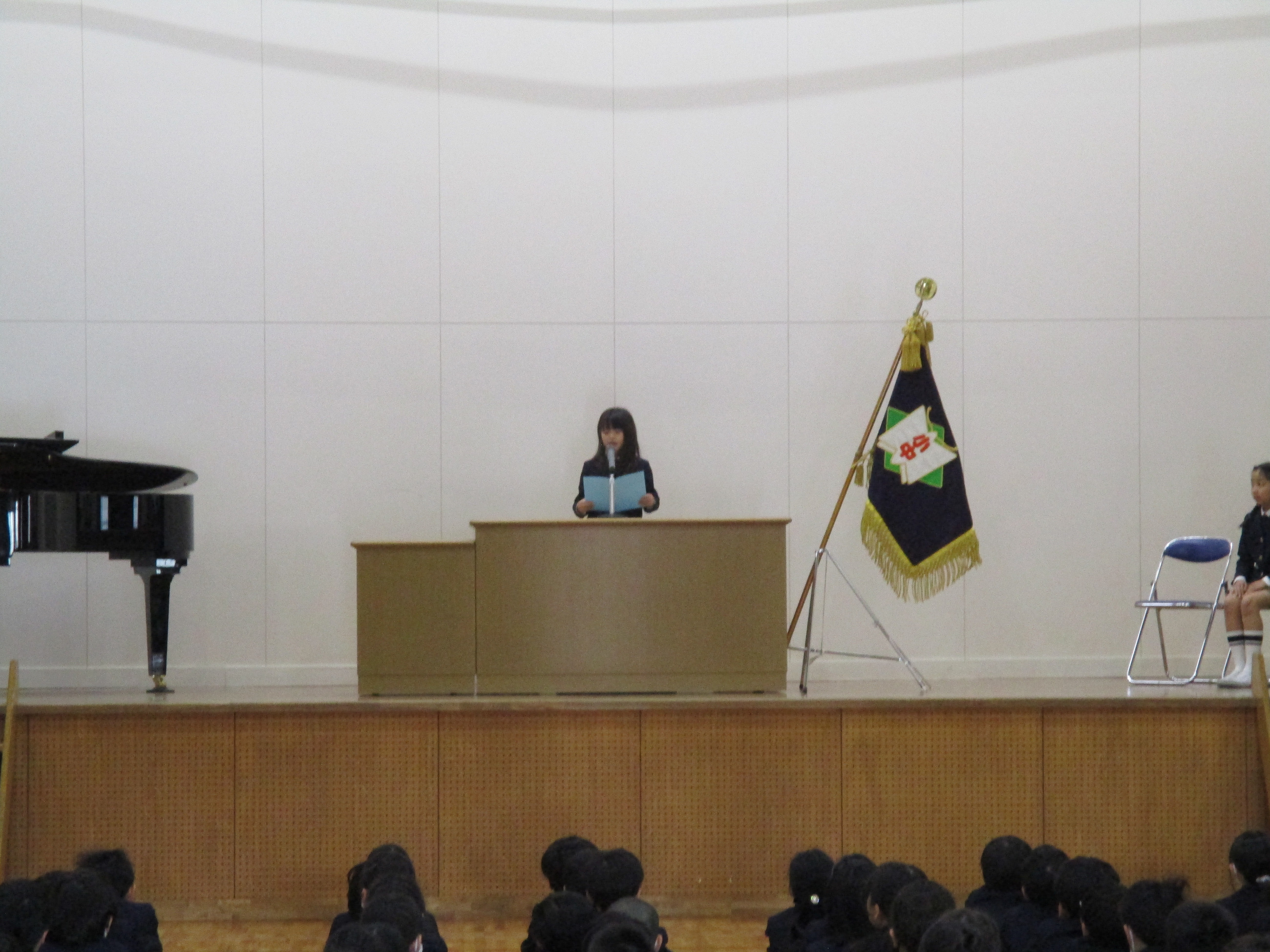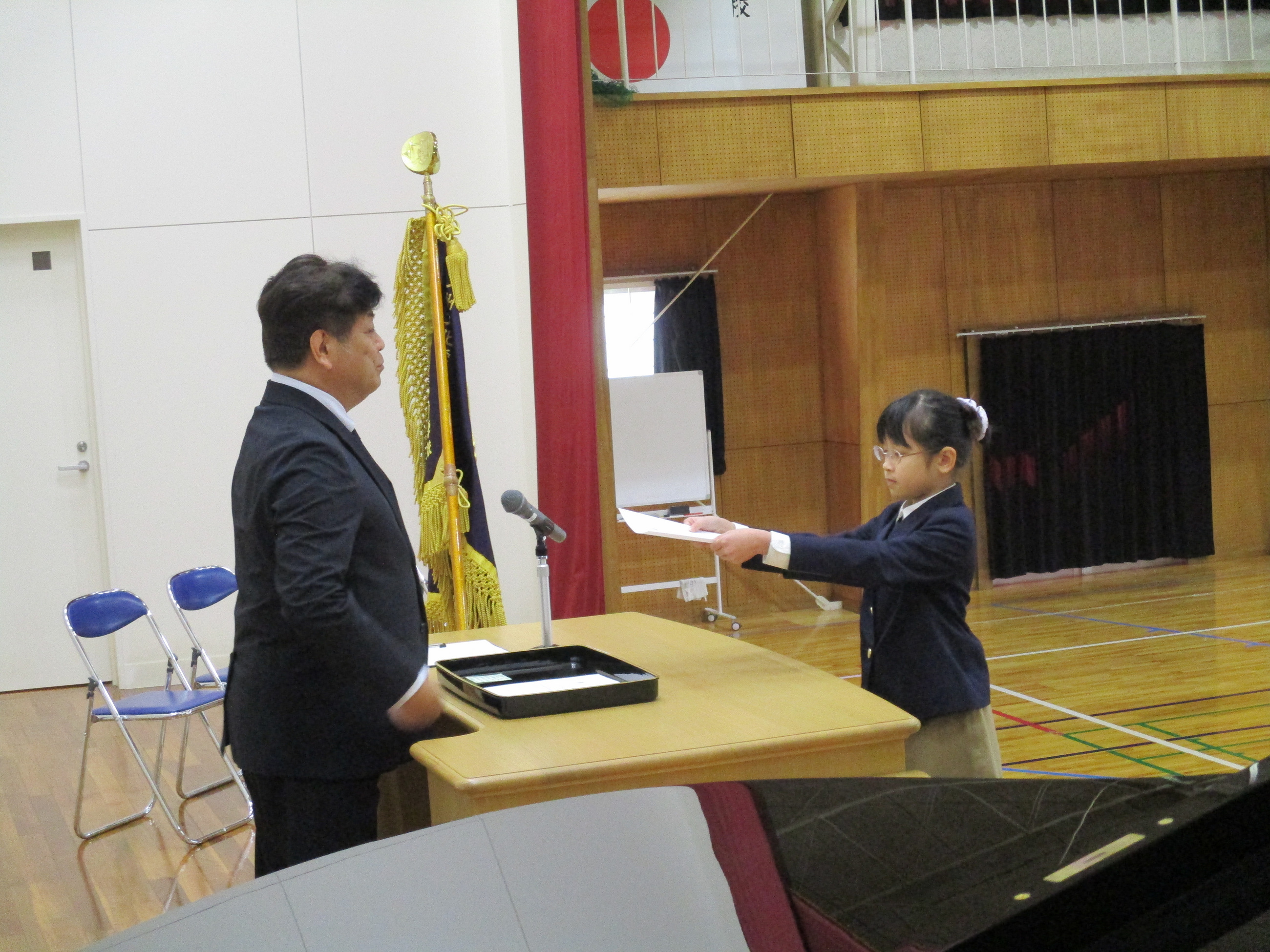 本日、令和7年度修了式を行いました。式の前には、転出児童の挨拶があり、この学校での思い出やみんなへの感謝の気持ちが伝えらました。