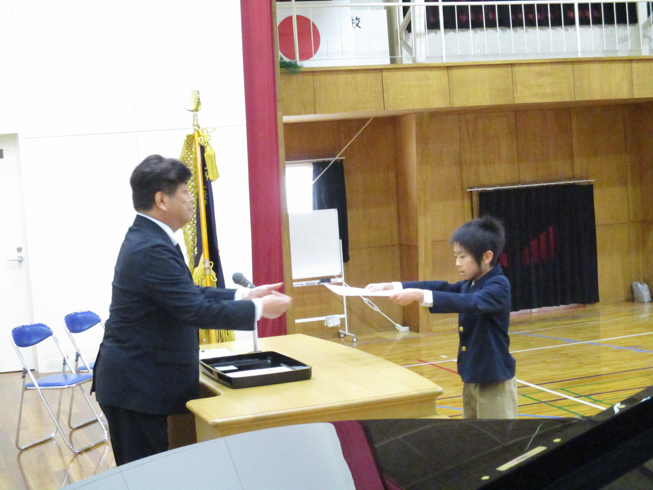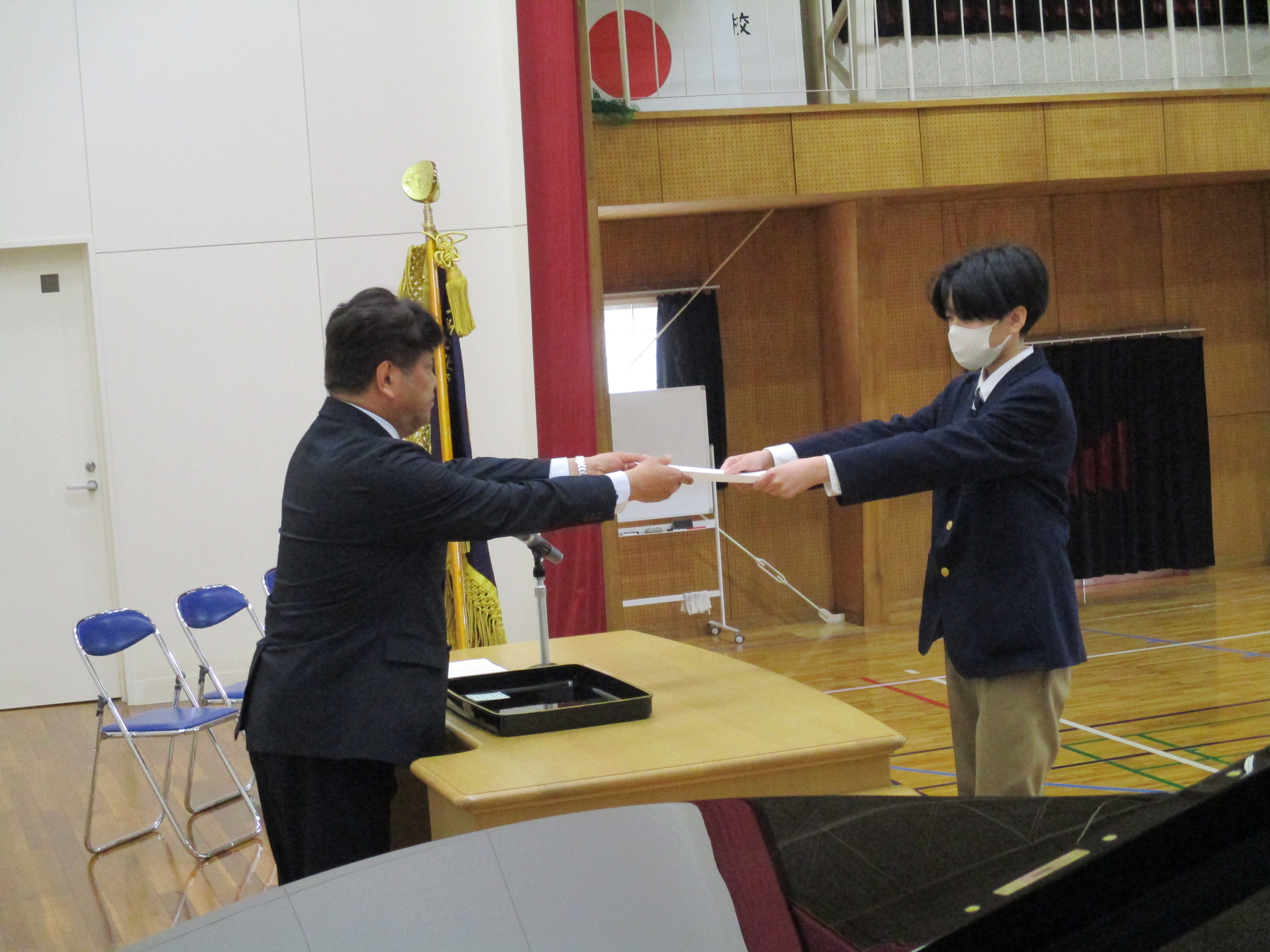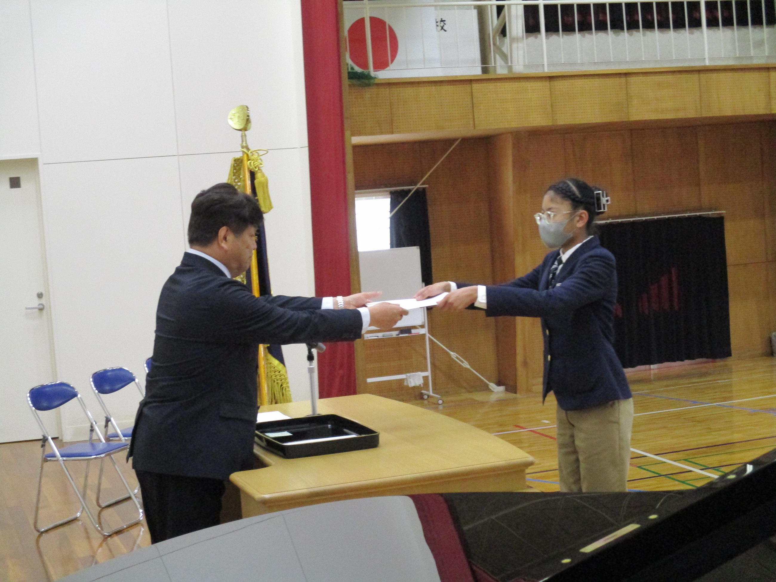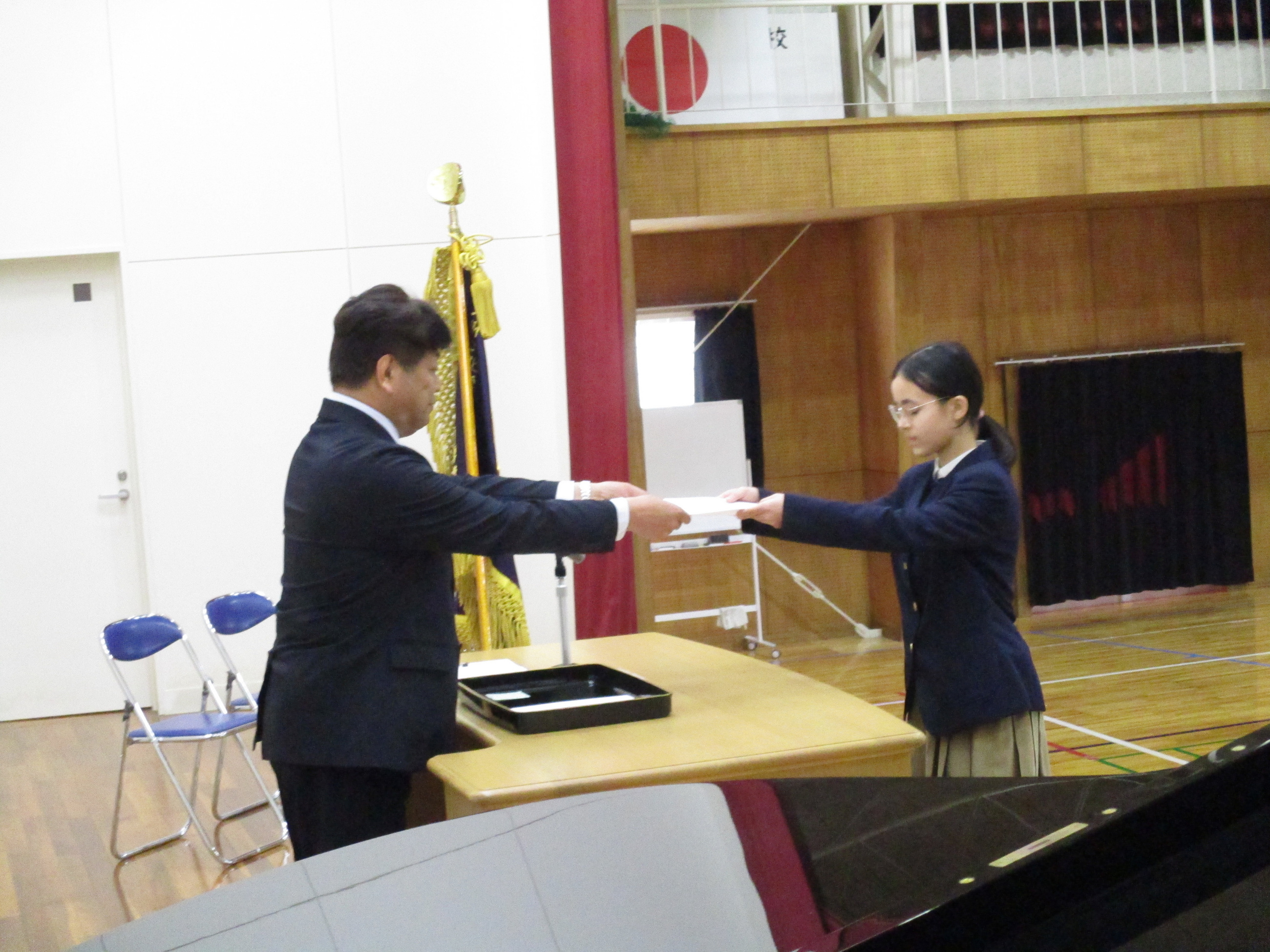 式では、修了証の授与が行われ、各学年の代表児童生徒が修了証を受け取り、この一年間の学びと成長を改めて実感する機会となりました。