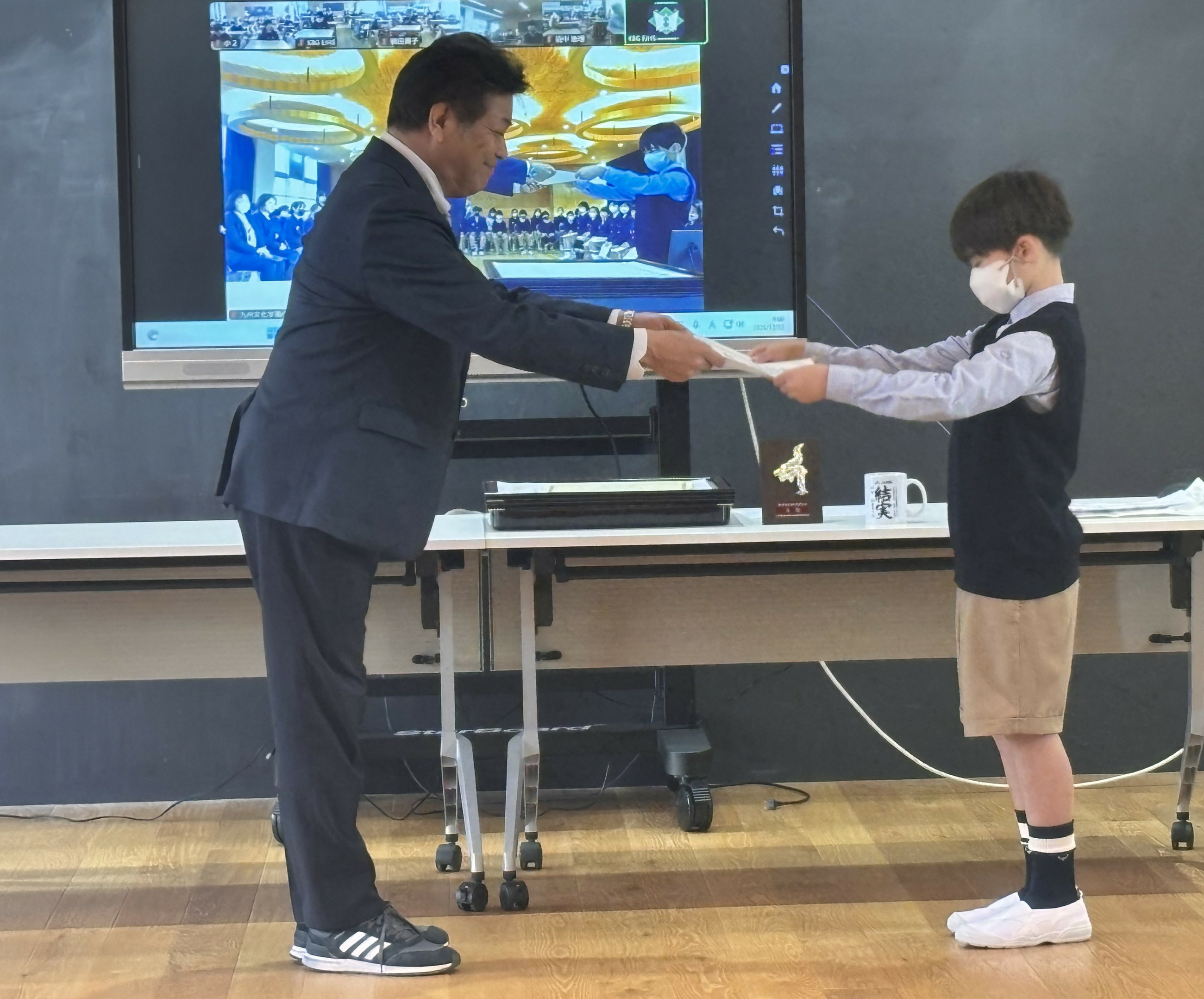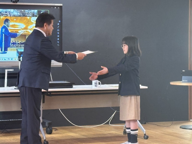 December 25, 2025 12月 2学期も頑張りました(12月表彰) 2学期の子どもたちも、さまざまな分野で活躍し、多くの表彰を受けました。英語検定、算数検定、漢字検定、読書感想文、読書感想画、作文コンクール、徳育標語コンクール、書道、絵画、空手など子どもたちの頑張りがみられました。また、80周年記念「未来予想図~ぼく・わたしが思い描く未来の九州文化学園~」絵画作品での理事長賞、法人本部長賞、校長賞、副校長賞の表彰もありました。目標に向かって一生懸命取り組んでいる姿やいろいろなことに挑戦する姿は本当にすばらしいです。これからも一人一人のよさや可能性を大切にしながら、子どもたちの成長を応援していきます。 フォトギャラリー