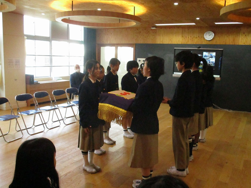 January 16, 2026 1月 児童会活動 SSC活動引継ぎ式 本校の児童会活動であるSSC活動(SDGs Student Council)の引継ぎ式を、オンラインにて実施しました。当日は、これまでリーダーとしてSSC活動を牽引してきた6年生から、各委員会の象徴である校旗・マイク・消毒セット・植木鉢・図書当番ファイルが、5年生の新リーダーへと引き継がれました。また、6時間目には各委員会の顔合わせを行い、新体制での活動がスタートしました。これからは新5・6年生を中心に、全校児童が力を合わせ、よりよい九文小学校づくりに取り組んでいきます。 フォトギャラリー