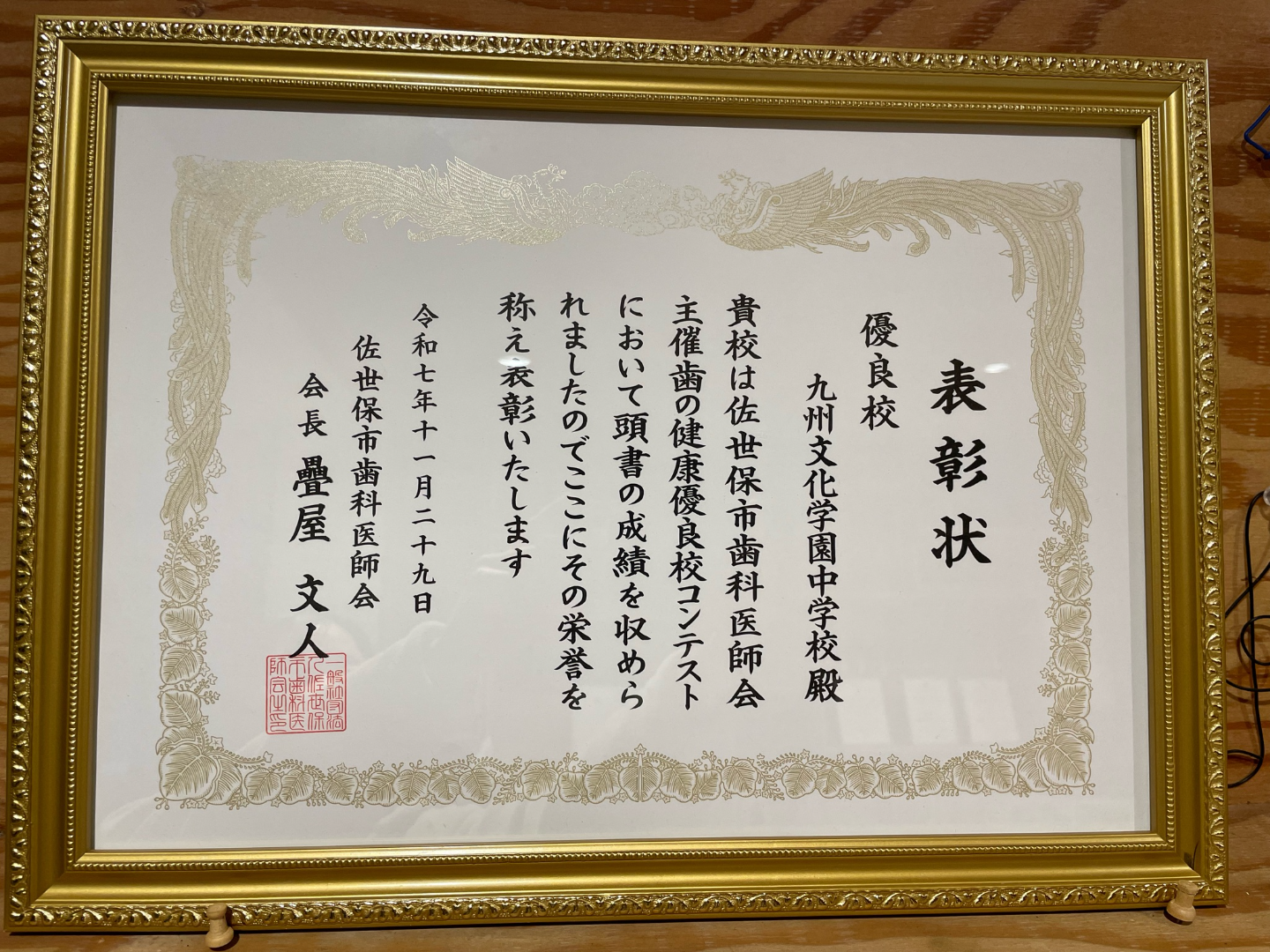 令和7年度読書活動コンクール 読書感想の部 優秀賞・優良賞、第75回西九州小中学生書道大会 金賞・銀賞、第29回玄心全国学生書展、令和7年度JA共済小・中学生書道コンクール 条幅の部 佳作、令和7年度 明るい選挙書写作品展 入選、佐世保市中文連学芸部夏休み作品展、令和7年度「私の『夢・憧れ・志』作文コンクール」 入選、第11回ヤマハジュニアピアノコンクール長崎大会 最優秀賞、まちなか徳育推進標語コンクール 入選、第20回長崎県中学校総合文化祭 西彼・西海大会 デザインの部・書写の部、漢字検定3級、数学検定5級・4級・3級、高円宮杯第77回全日本中学校英語弁論大会 長崎県大会、英語検定5級・4級・3級・準2級・2級・準1級