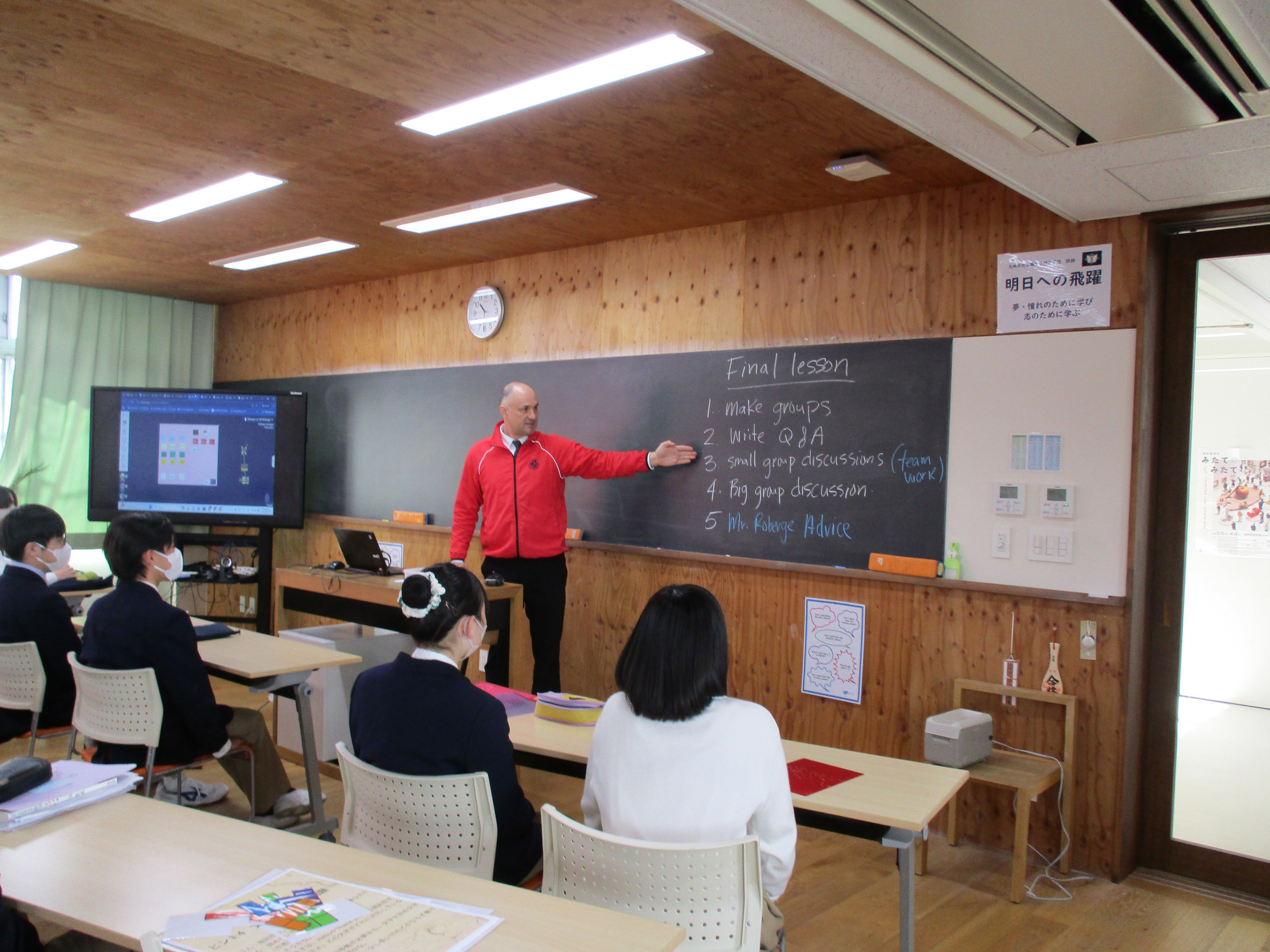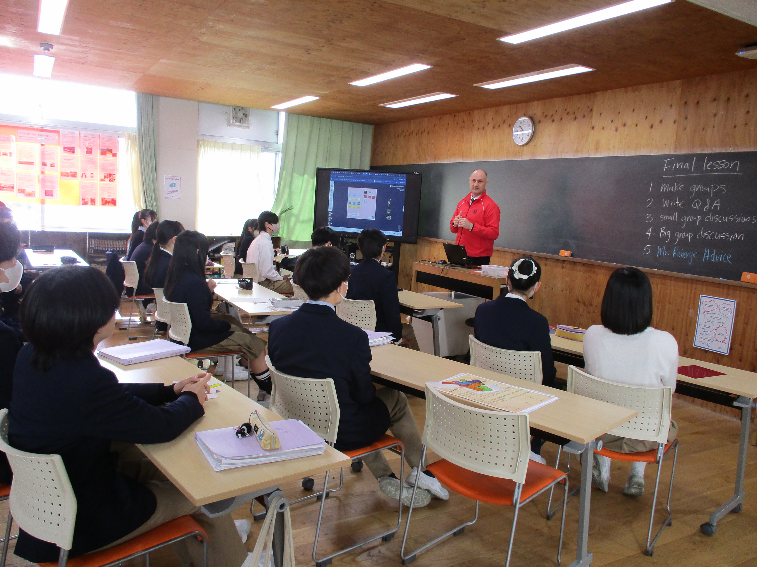 On March 4th, the third-year junior high students attended their final class taught by Deputy Principal, Mr. Roberge. Reflecting on their three years, they answered five questions, including their most memorable experience and the challenges they tackled. Lessons and events like working hard on English speeches and desperately practicing choir conducting seem to have left a deep impression. When asked who they were most grateful to, the most common answer was, unsurprisingly, their parents.