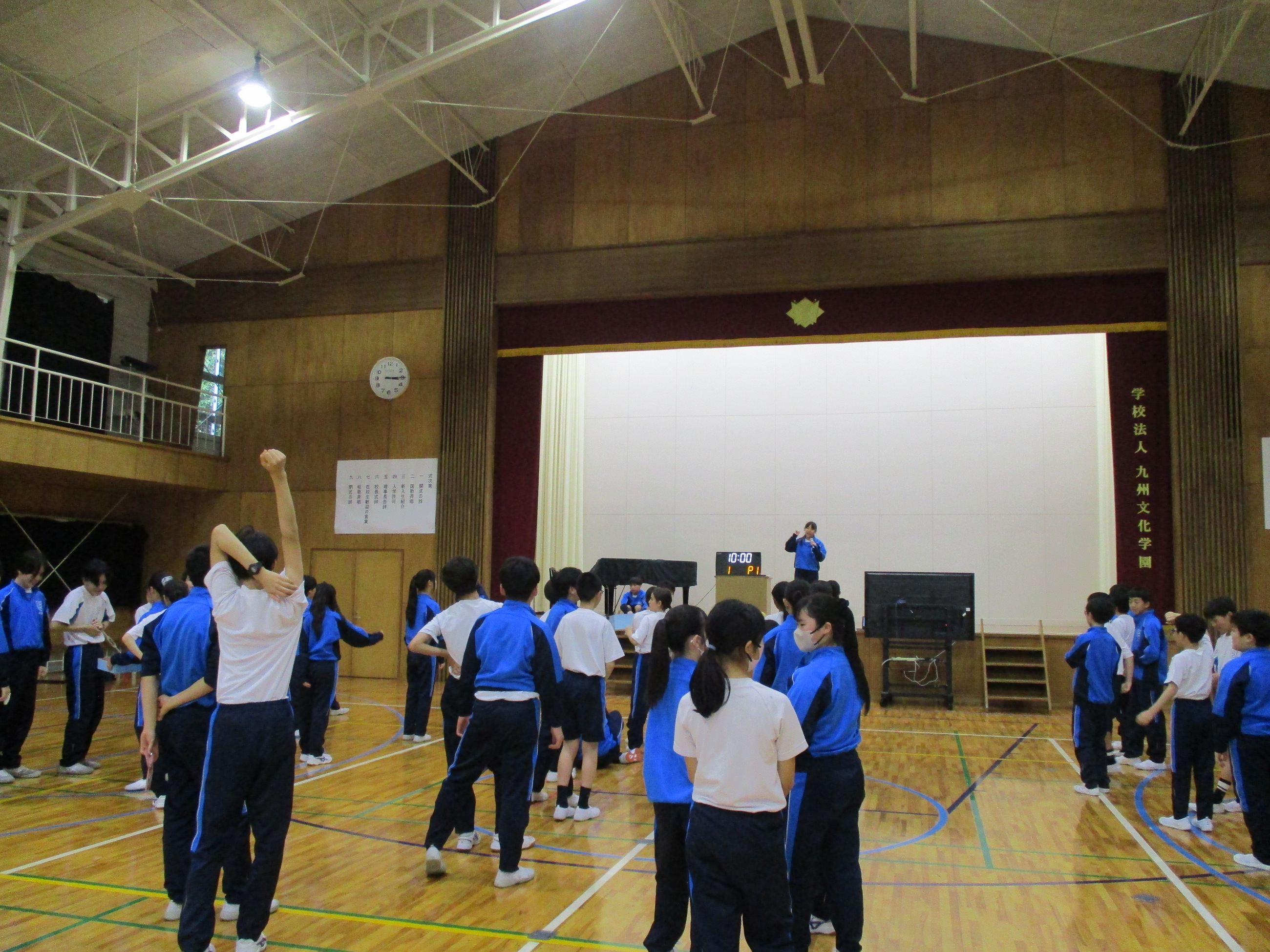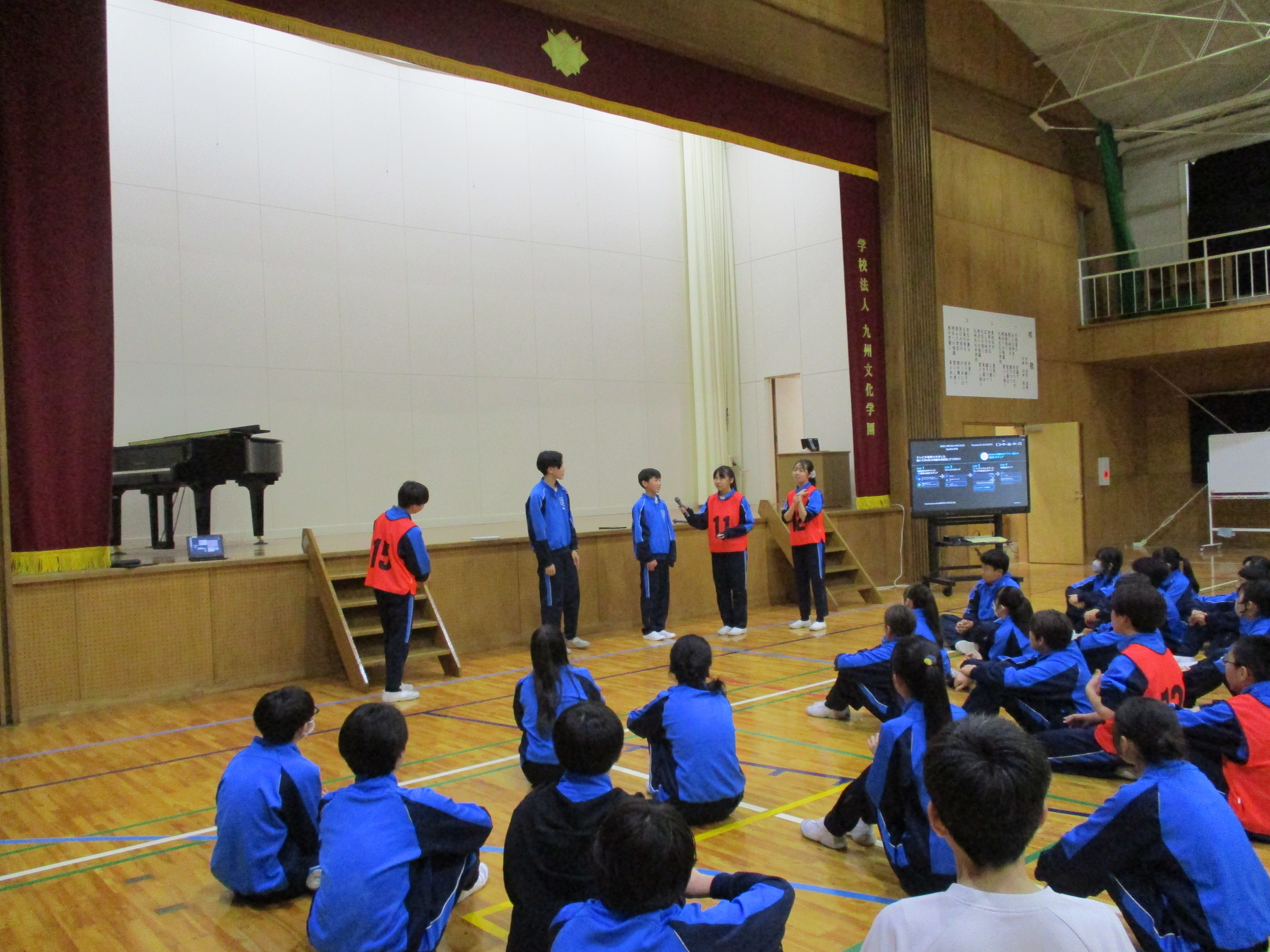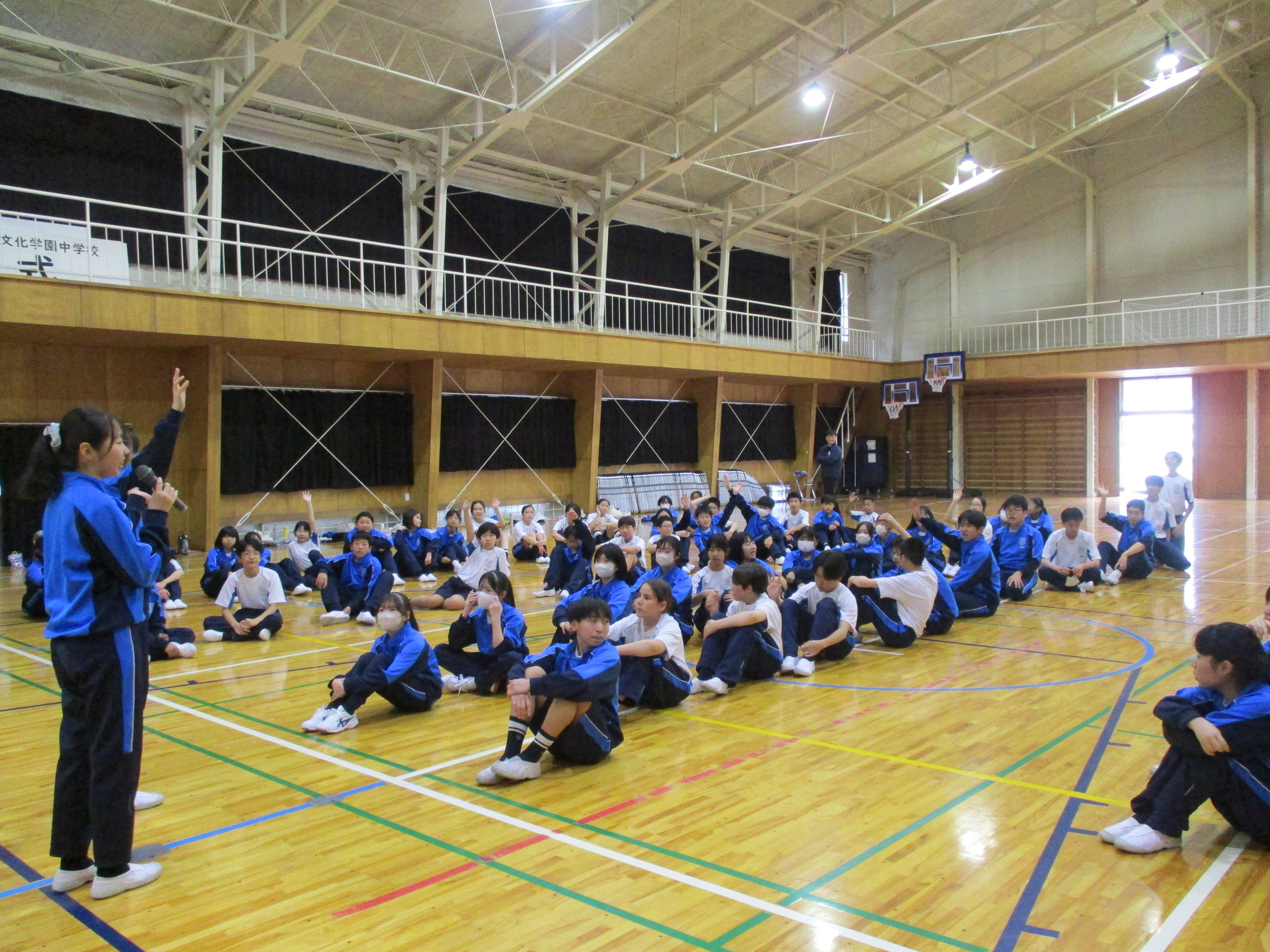 本日、中学校の歓迎行事を行いました。生徒会役員が春休み期間中に準備を進め、本校で学校生活を送る上で大切にしてる生徒心得「KBG’s PRIDE Goal」を分かりやすく伝えるための劇や、歓迎レクリエーションを実施しました。生徒心得の劇では、日常を切り取った中にKBG’s PRIDE Goalを当てはめて生徒会が台本を作成し、練習を重ね、披露しました。歓迎レクリエーションでは、「学校かくれんぼ」、「私は誰でしょう」、「人狼鬼ごっこ」、「ドッヂボール」を行い、それぞれのレクリエーションで上位の生徒には、景品が渡されました。