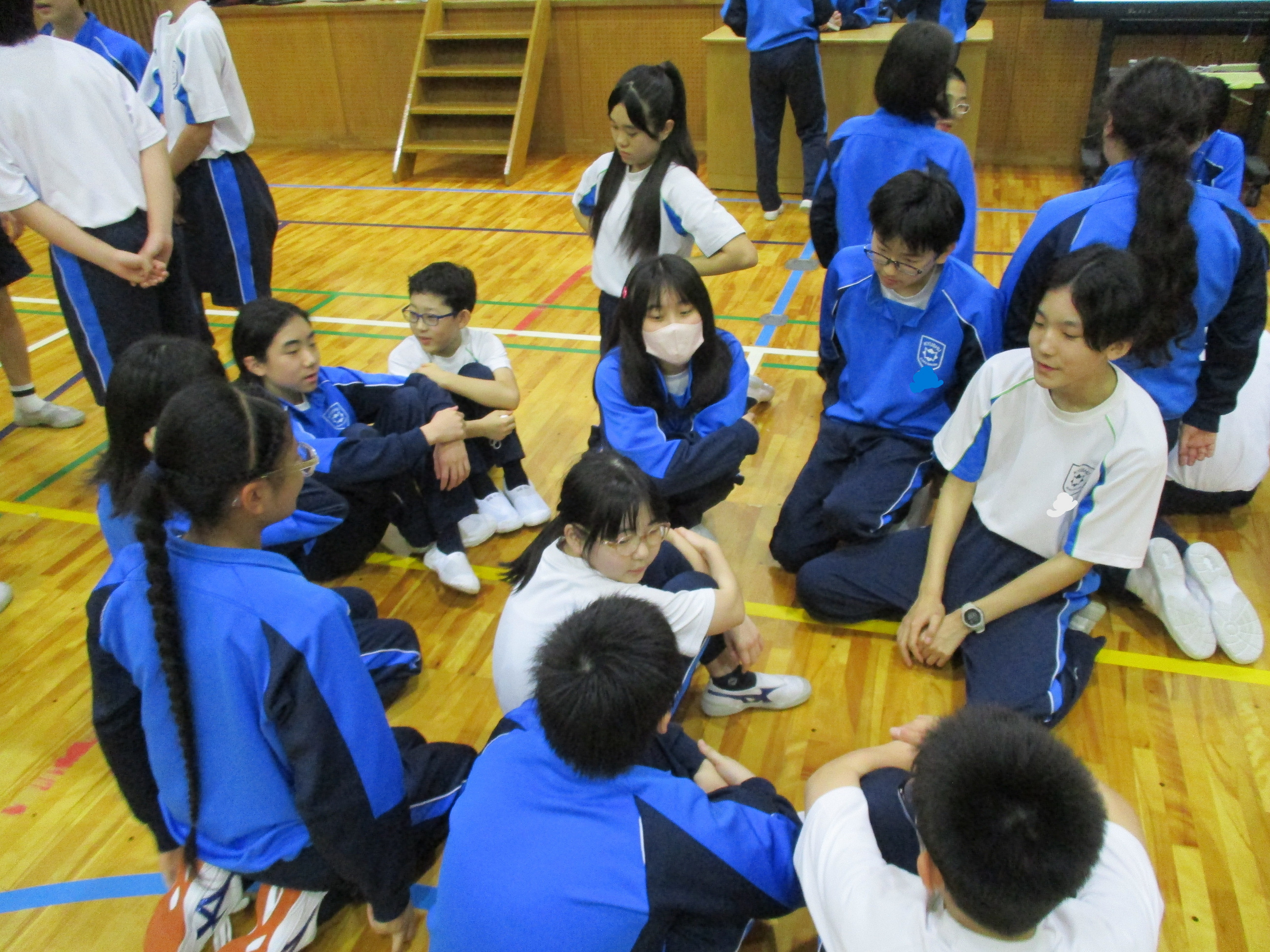 天気はあいにくの雨でしたが、体育館には楽しそうな笑い声が響き渡っていました。昼休みには、他学年とおやつを食べたり、スポーツをしたりと、新入生や他学年と親睦を深める良い機会となりました。